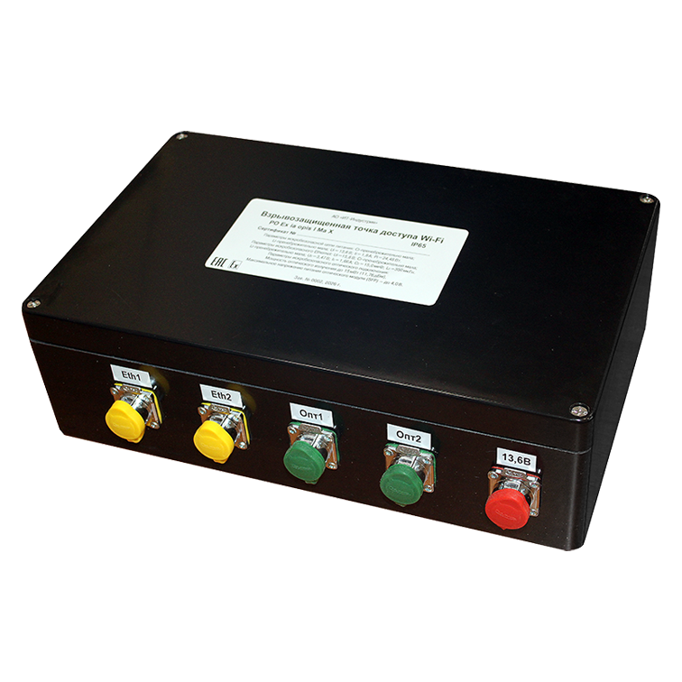 Шахтная универсальная взрывозащищённая точка беспроводного доступа «ВЗТД» стандарта Wi-Fi 6 – обеспечивает создание высокоскоростного широкополосного радиопокрытия в угольных шахтах и рудниках, в том числе опасных по газу и пыли. Поддерживает объединение необходимого количества точек доступа в единую подземную сеть Wi-Fi. Предоставляет бесшовную беспроводную среду для голосовой связи через промышленные смартфоны, формирования заданий для рабочих бригад, передачи данных, видеонаблюдения.