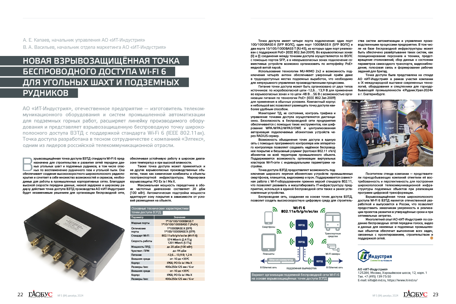 Статья о точке доступа «ВЗТД» в журнале «Глобус» №5(84)-2024 г.